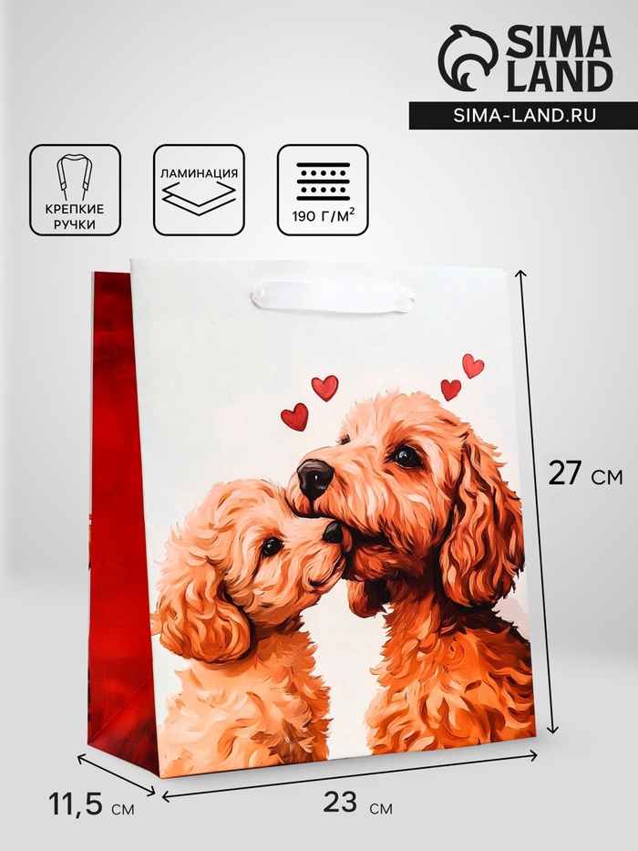 Пакет подарочный вертикальный «Щенята», 23×27×11.5 см