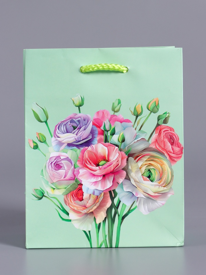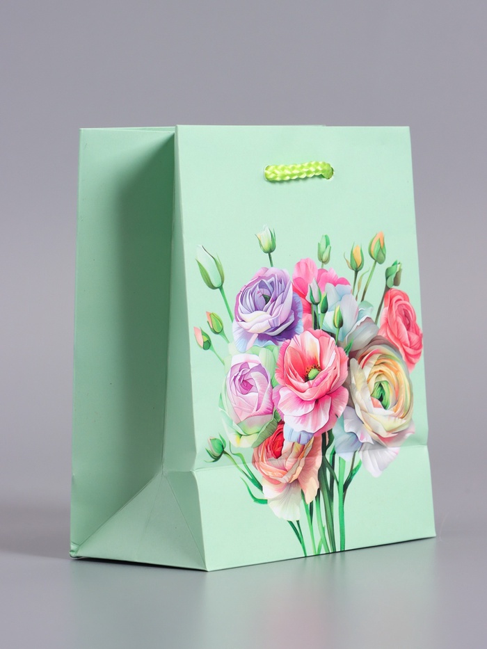 Пакет подарочный "Весенний букет" ламинированый 11,5 х 14,5 х 6,5 см