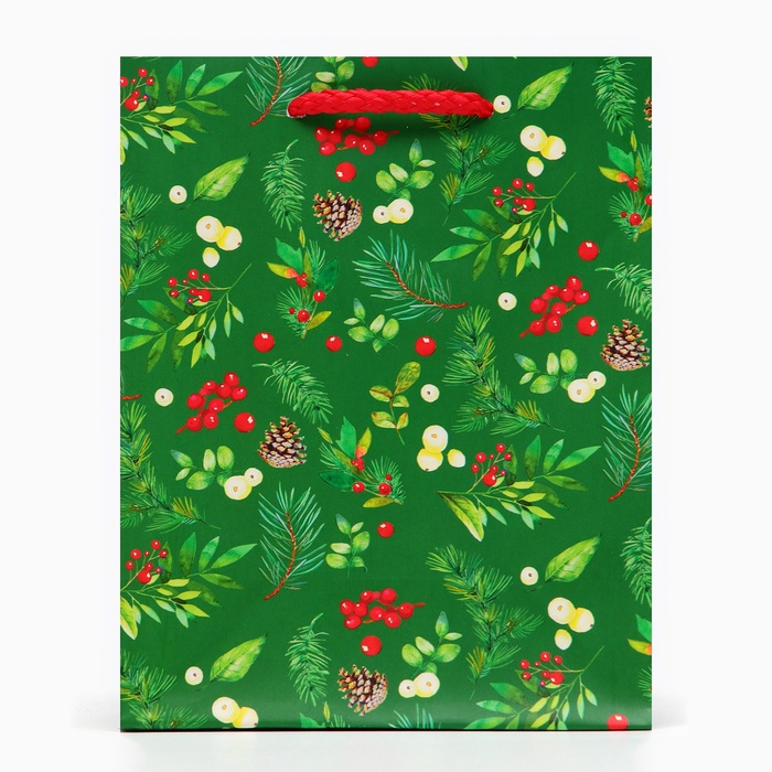 Новогодний подарочный пакет, выполненный из высококачественного материала с плотностью 210 г/м². Этот пакет идеально подходит для упаковки подарков на Новый год и создания праздничной атмосферы.
