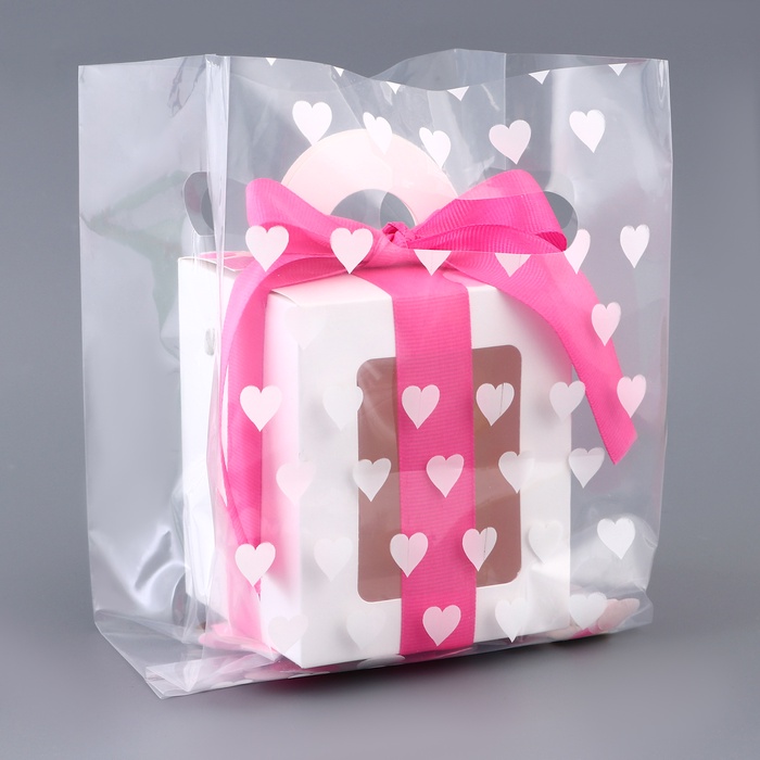 Пакет полиэтиленовый квадратный с вырубной ручкой, упаковка, "Сердечки", 15х25+6см ± 5% 60 мкм