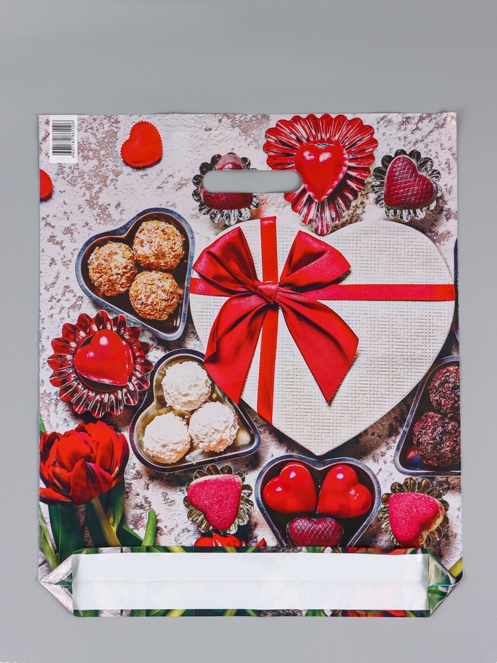 Яркое настроение для сладких подарков. Пакет с вырубной ручкой «Сладкое сердце», 38x45 см — это вместительная и прочная упаковка с праздничным дизайном. Ее красочные иллюстрации созданы для подарков женщинам и девочкам на романтичные и весенние праздники.
