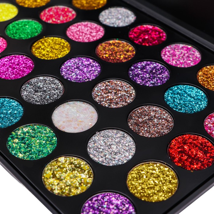 Яркие и блестящие тени для глаз, лица, тела - современный тренд в декоративной косметике для детей и взрослых. Используйте их в вечернем и повседневном макияже. За несколько секунд блестки для лица прочно фиксируются на коже, не стягивая ее, держатся дольше и надежнее, чем стразы для макияжа!