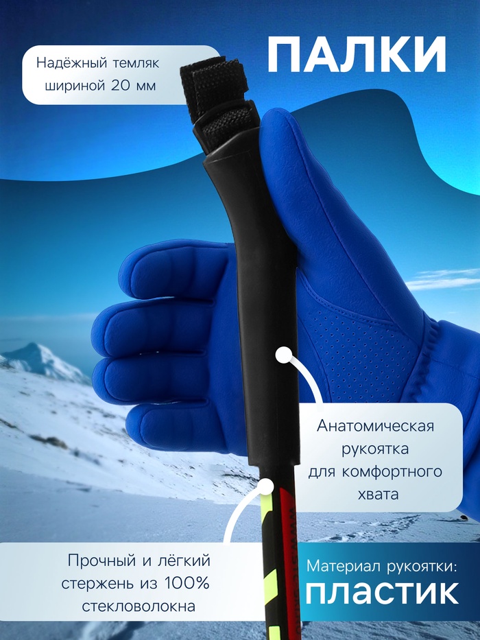 Палки лыжные стеклопластиковые, длина 100 см, цвета МИКС