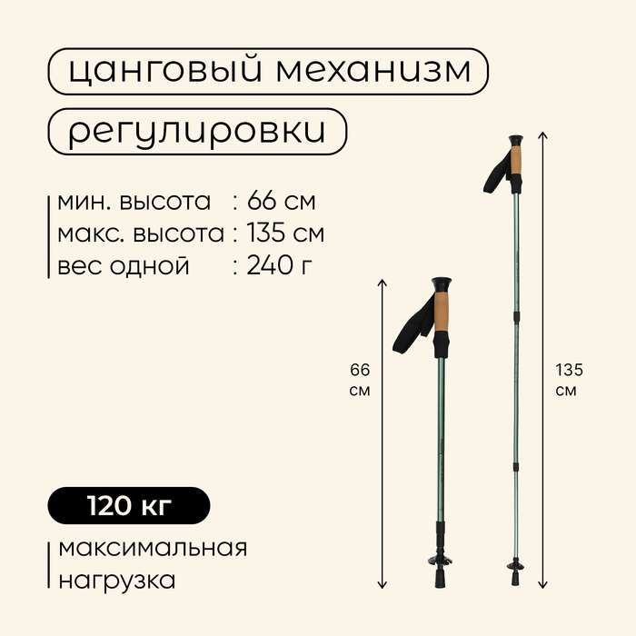 Трекинговые палки предназначены для любителей активного отдыха и путешествий. Они обеспечивают дополнительную опору и стабильность при ходьбе по пересечённой местности, снижая нагрузку на суставы и мышцы. Идеально подходят для пеших походов, трекинга, альпинизма и скандинавской ходьбы.