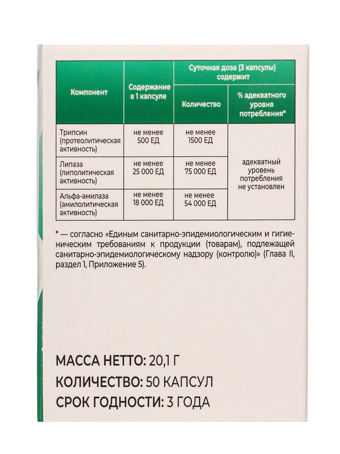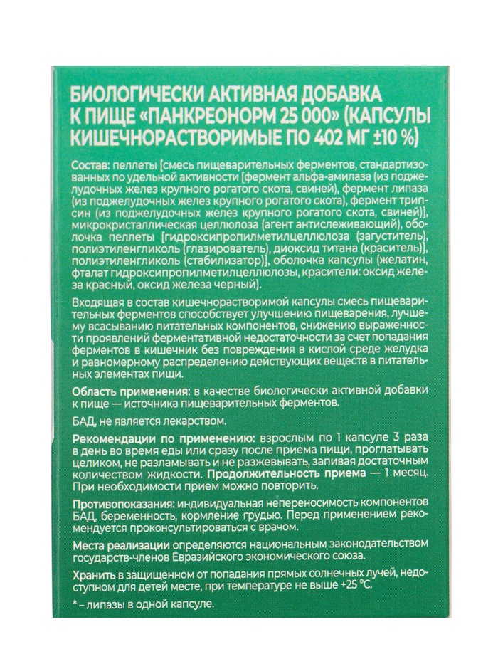 - Высокая активность ферментов. 25 000 единиц активности в одной капсуле для максимальной поддержки пищеварения.