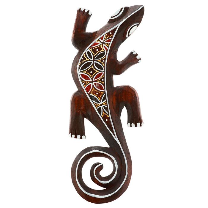 Не каждый осмелится разместить такое панно ручной работы в своем интерьере. Ведь порой кажется, что это настоящая живая рептилия. Искусные индонезийские мастера изобразили всё настолько детализировано четко, что хочется прикоснуться к панно дерево "Геккон" 31х11х1 см и ощутить тонкие линии изгибов этой «ящерицы счастья».
