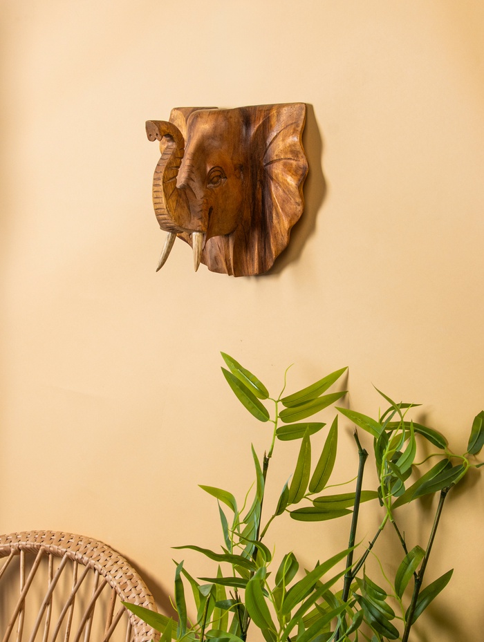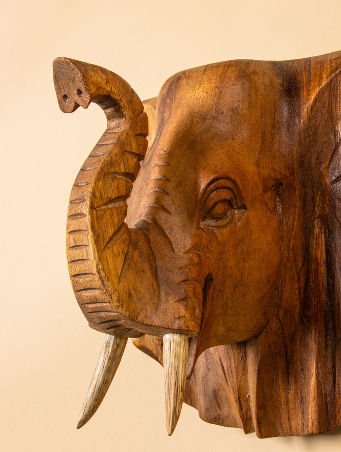 Панно «Голова слона», 32×15×22 см, дерево Суар, бежевое