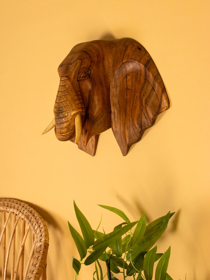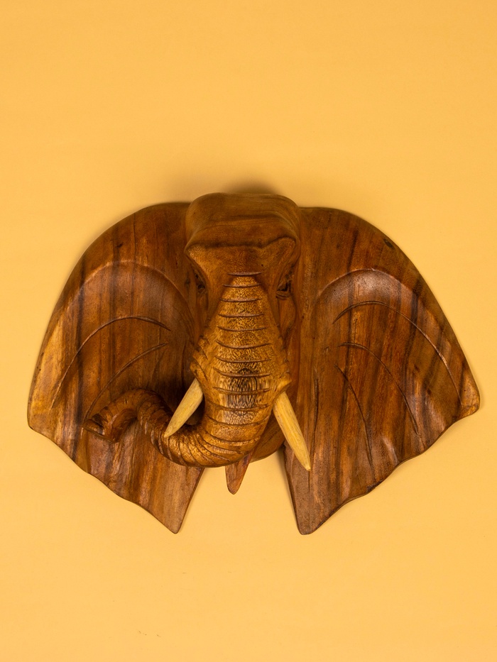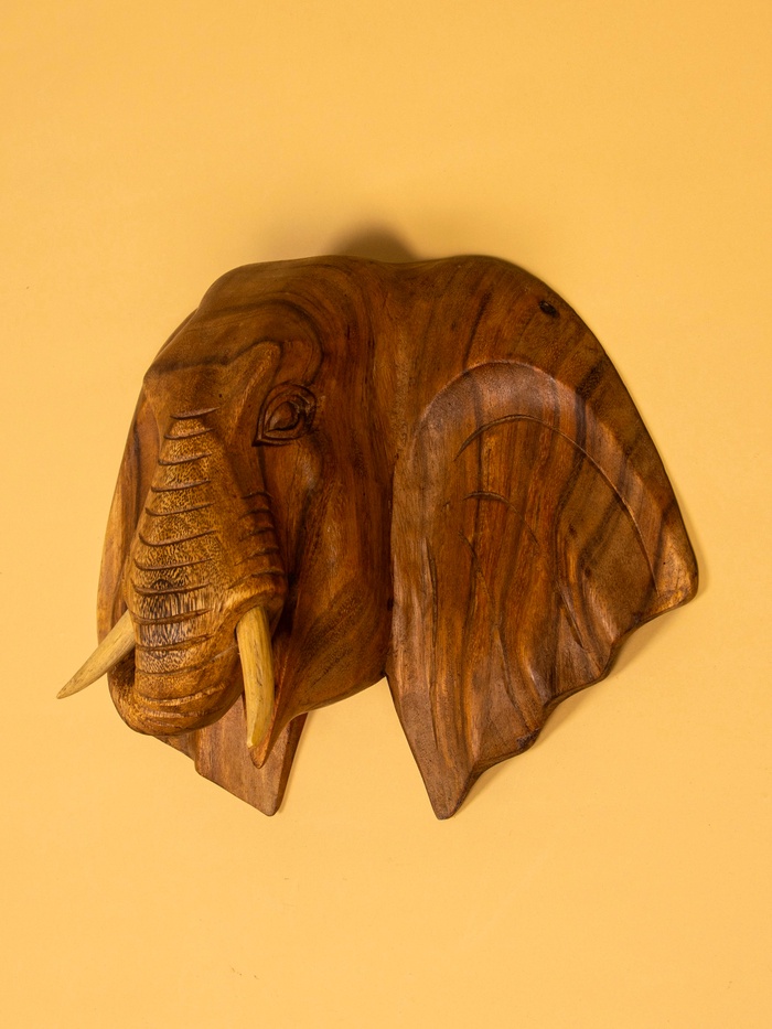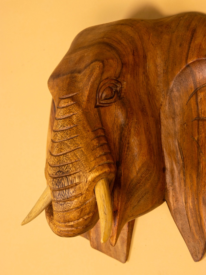Панно "Голова слона" дерево Суар, 40х15х30 см, цв. бежевый