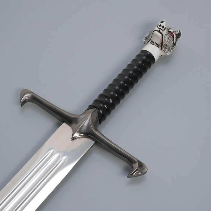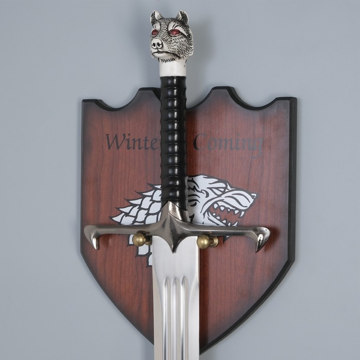 - Качество материалов: меч изготовлен из металла, что обеспечивает его долговечность и прочность, а пластиковая ручка добавляет удобства при размещении.