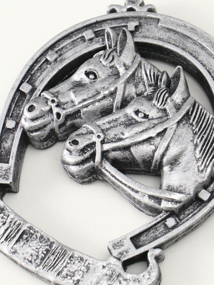 Панно "Подккова с лошадками" 12х15 см, сталь с посеребрением