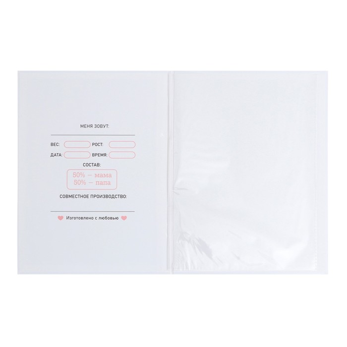 Папка под свидетельство о рождении формата А4 имеет удобный файл внутри, который защитит первый в жизни документ малыша от повреждений.