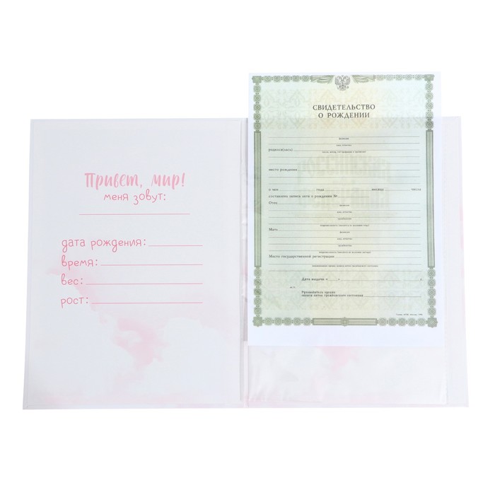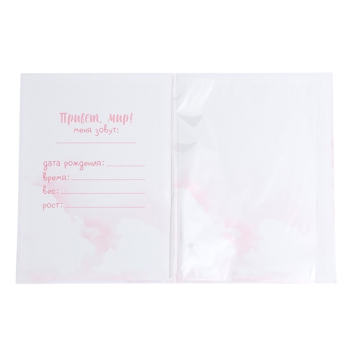 Папка под свидетельство о рождении формата А4 имеет удобный файл внутри, который защитит первый в жизни документ малыша от повреждений.