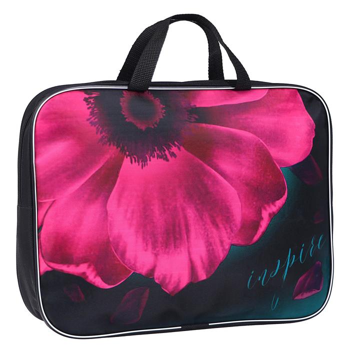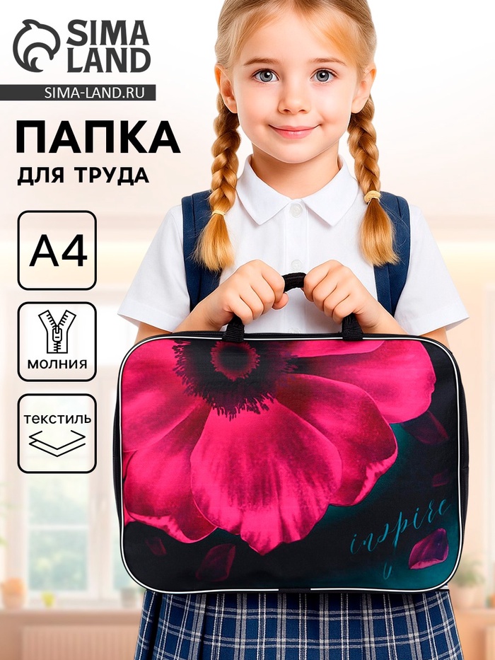 Папка текстильная на молнии с ручками, формат A4+. Размер 270 х 70 х 350 мм. Материал: износо-морозостойкий водоотталкивающий 100% полиэстер. Предназначена для транспортировки учебных принадлежностей, документов и различных аксессуаров. Имеет одно большое отделение с расширением и карманом внутри, застежка на молнии с мягким ходом. Для комфортной переноски ручки папки выполнены из прочной стропы