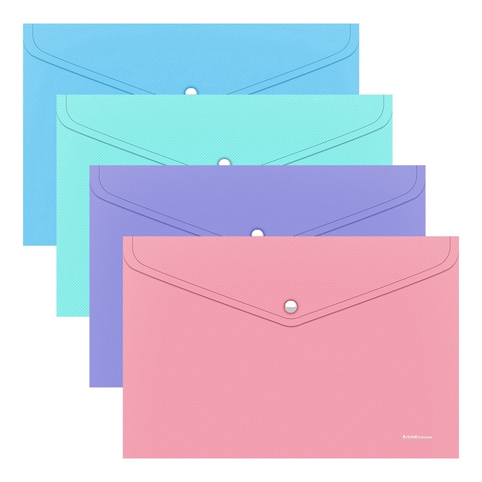 Папка-конверт на кнопке формата А4 из высококачественного непрозрачного пластика с текстурой поверхности "диагональ", на которой не видно отпечатков пальцев и мелких царапин.