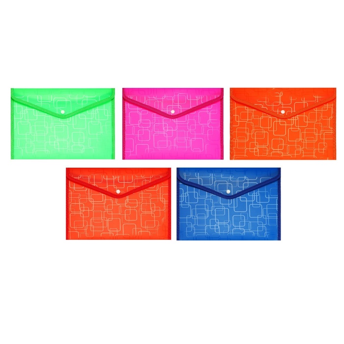 Папка-конверт на кнопке А4, 330 мкм, Calligrata «Квадраты», обшитая, с текстильной вставкой, полупрозрачный, МИКС