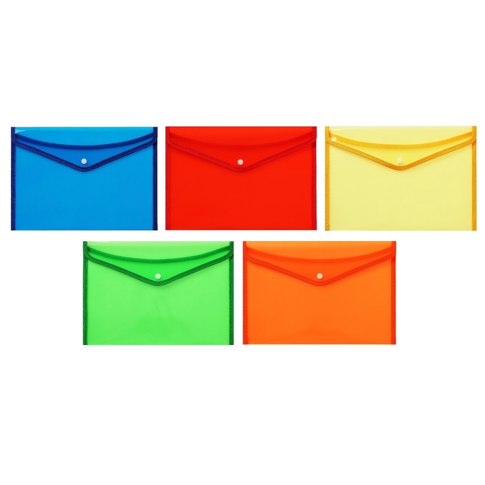 Папка-конверт на кнопке А4, 330 мкм, Calligrata, обшитая, с текстильной вставкой, прозрачный, тиснение, МИКС