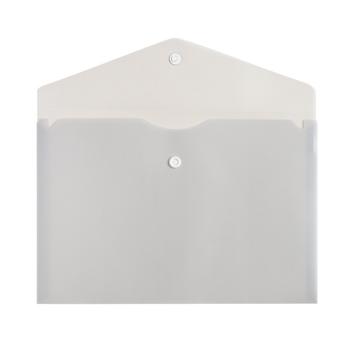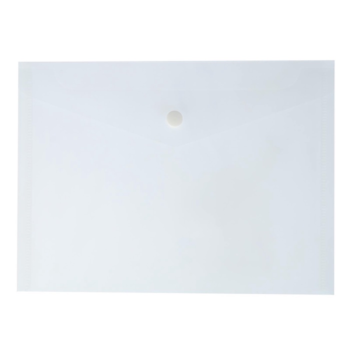 Папка-конверт с гладкой фактурой формата А5 малого формата изготовлена из плотного матового полупрозрачного пластика толщиной 180 мкм. Закрывается на защелку-кнопку, что делает удобным частое использование и обеспечивает быстрый доступ к ее содержимому. Папка способна вместить до 80 листов стандартной плотности.