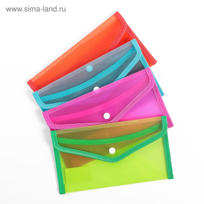 Папка-конверт на кнопке, В65, 330 мкм, жёсткая, с кантом, тонированная, рифлёная, МИКС