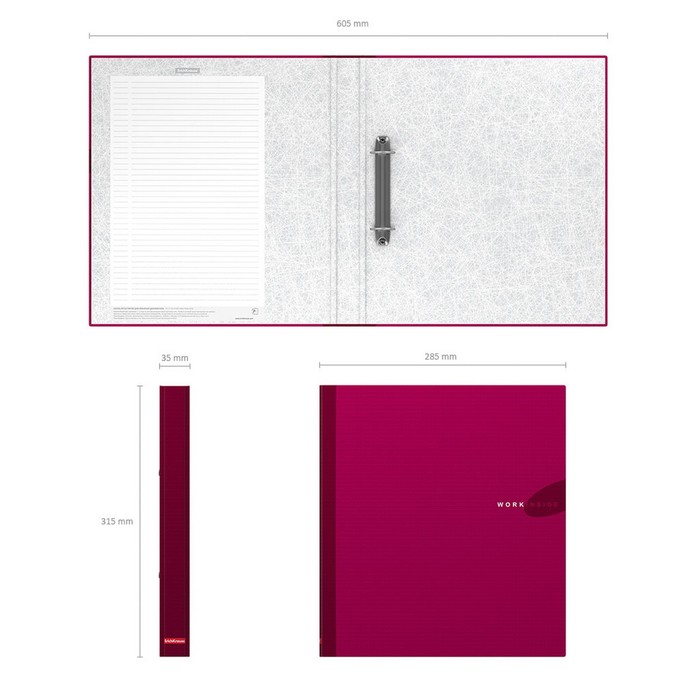 Папка на 2 кольцах А4, ErichKrause Work inside, 35 мм, 1750 мкм, ламинированная, твердая обложка, бордовая