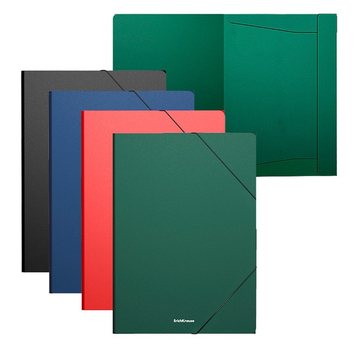 Папка на резинках формата A4 из высококачественного пластика с текстурой поверхности "песок", на которой не видно отпечатков пальцев и мелких царапин. Предназначена для хранения и транспортировки документов. Цвет папки - ассорти: черный, синий, зеленый, красный. Надежные застежки-резинки обеспечивают быстрый доступ к содержимому. Папка вмещает до 300 бумажных листов. Размер папки - 246 х 320 х 5 мм, толщина обложки - 0.4 мм. Поставляется в различных вариантах цвета без возможности выбора.