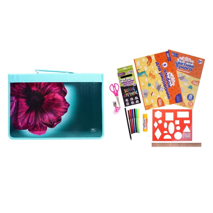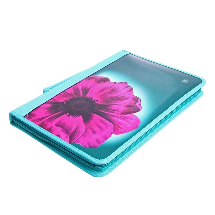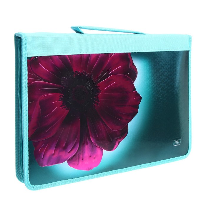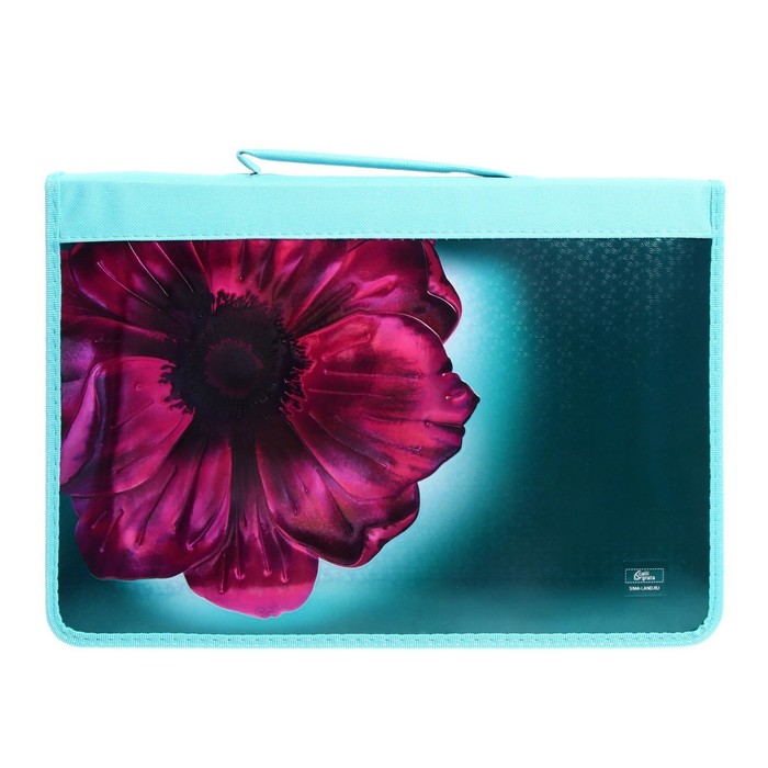 Папка-пенал для труда А4, 340×240×30 мм, с ручкой, молния вокруг, наполнение 12 предметов, Calligrata, «Цветок», ламинированный картон (объемный 3D-рису�...