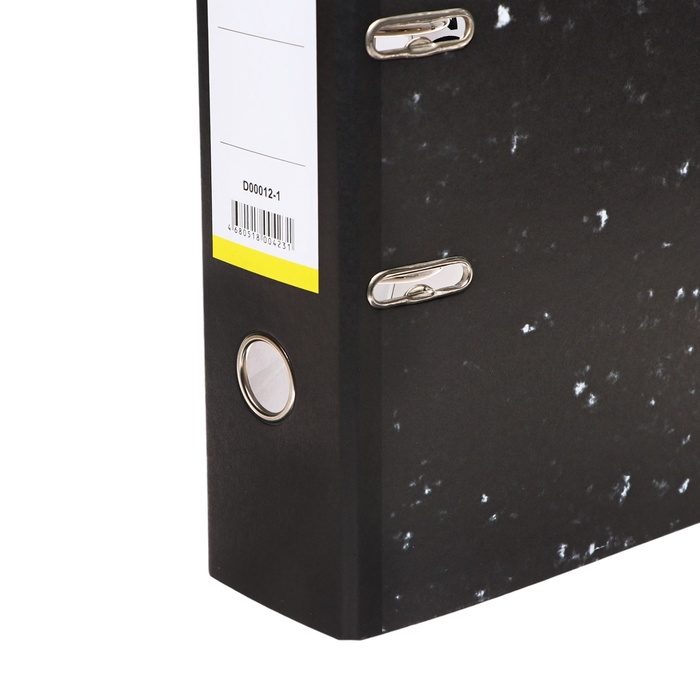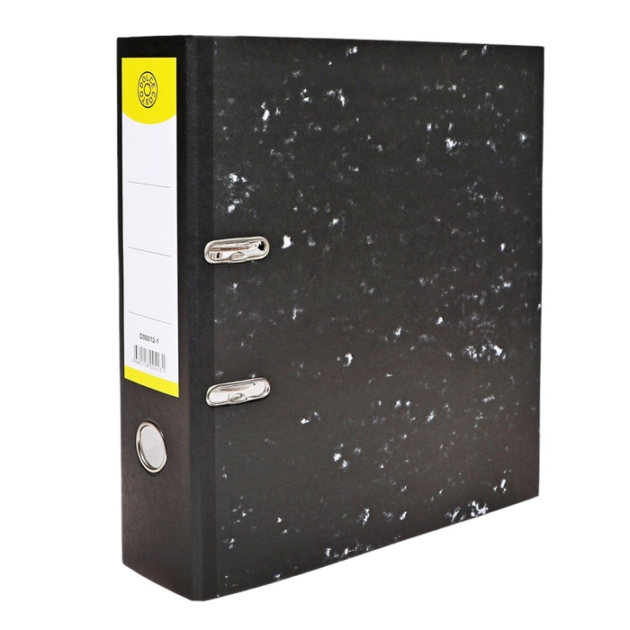 Папка-регистратор эконом, формата А4 – отличный помощник для хранения и систематизации документов. Ширина корешка – 75 мм. Папка чёрного цвета вмещает до 500 листов стандартной плотности. Размер – 290 х 320 х 75 мм. Папка-регистратор с вертикальной ориентацией выполнена из твёрдого картона толщиной 1,5 мм и имеет внешнее покрытие из офсетной бумаги «мрамор». Внутренняя часть папки также выполнена из офсетной бумаги. Изделие имеет металлический арочный механизм и поставляется в собранном виде