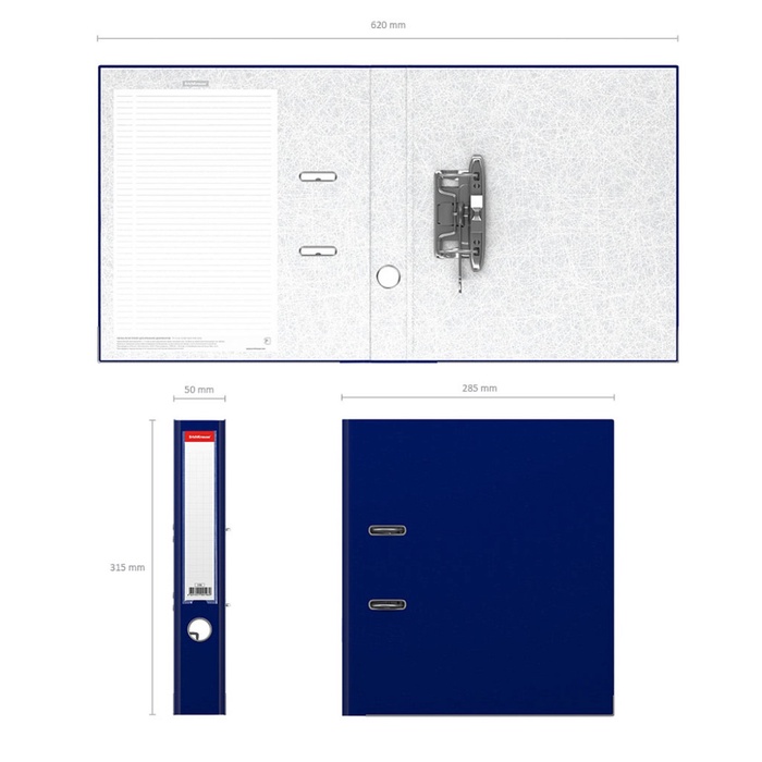 Папка-регистратор А4, 50 мм, ErichKrause Business, собранная, пластиковый карман, синяя, металлический кант, вместимость 350 листов