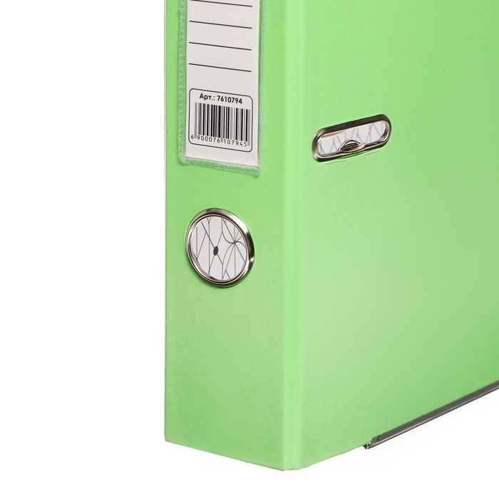 Папка-регистратор А4, 50 мм, ПВХ, тиснение «лен», металлическая окантовка, карман на корешок, собранная, светло-зеленая
