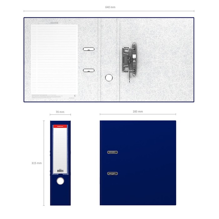 Папка-регистратор А4, 70 мм, ErichKrause Granite, собранный, синий, пластиковый карман, картон 1.75 мм, вместимость 450 листов