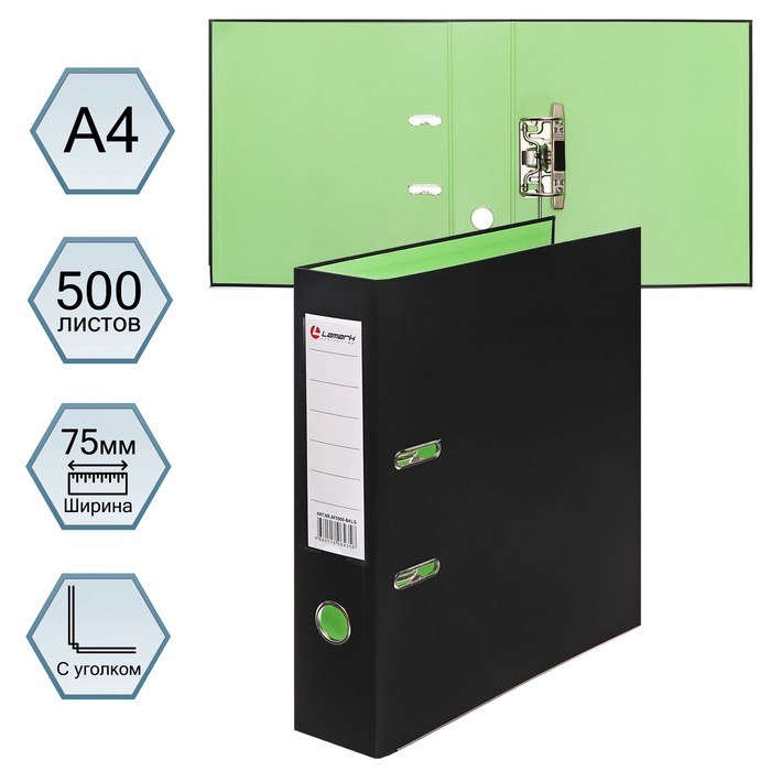 Папка-регистратор LAMARK серии «Бизнес» с арочным механизмом изготовлена из плотного картона, с внешней и с внутренней сторон за ламинированного пленкой PVC с текстурой «лён». Прорези на крышке удерживают папку закрытой даже при большом количестве документов. Ширина корешка 75 мм. Вместимость до 480 листов формата А4