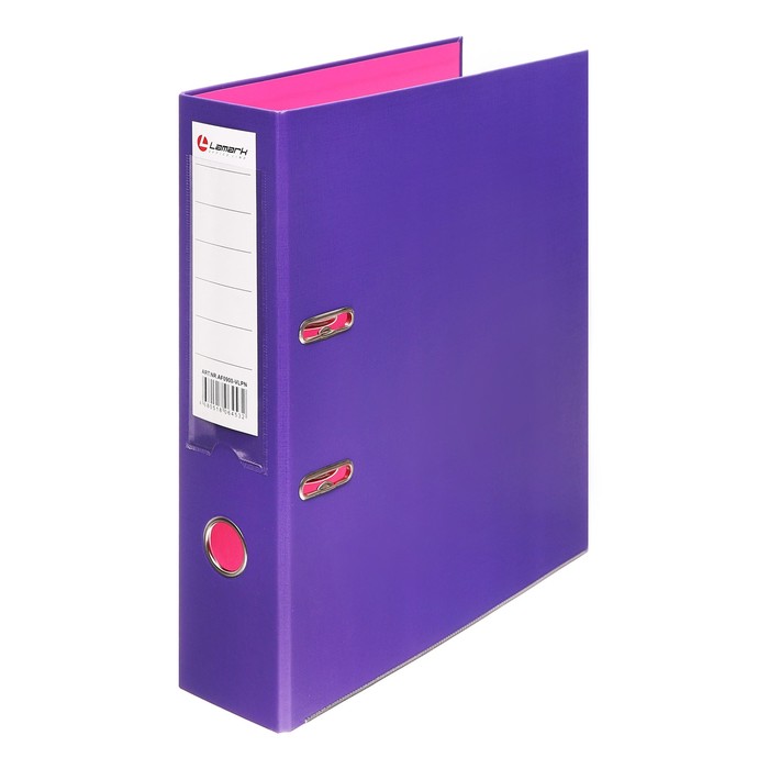 Папка-регистратор А4, 75 мм, Lamark, ПВХ, двухстороннее покрытие, металлическая окантовка, карман на корешок, собранная, фиолетовый/розовый