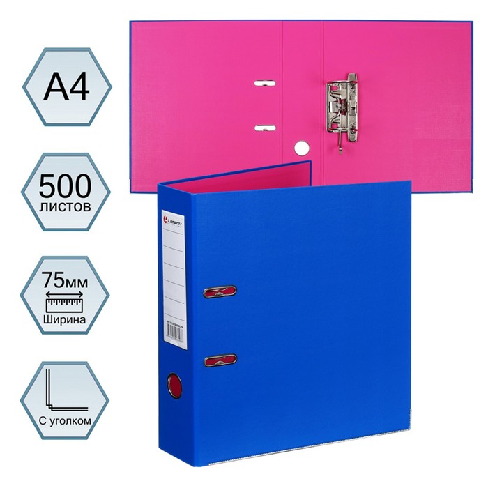 Папка-регистратор А4, 75 мм, Lamark, ПВХ, двухстороннее покрытие, металлическая окантовка, карман на корешок, собранная, синий/розовый