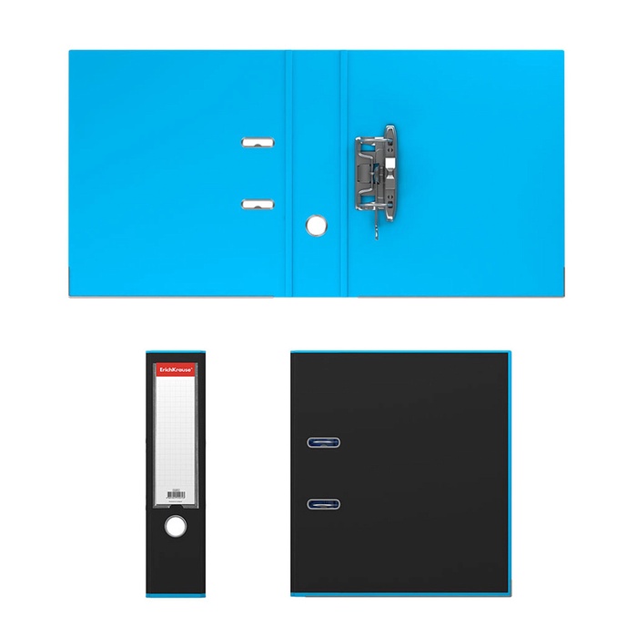 Папка - регистратор формата А4 снабжена стальным арочным механизмом с никелевым покрытием. Изготовлена из плотного картона, покрытого с двух сторон бумагой со структурным тиснением и водоотталкивающей поверхностью. Корешок папки шириной 50 мм оснащен прозрачным пластиковым карманом со сменной этикеткой для маркировки. Для удобства использования на корешке имеется металлическое кольцо для захвата. Нижние края обложки защищены металлическим кантом. Металлические фиксаторы удерживают папку в закрытом виде даже при максимальном наполнении. Вместительность до 350 листов бумаги плотности 80 г/м2. На форзаце есть шаблон для оглавления. в ярких неоновых цветах. Элегантный дизайн построен на контрасте черной внешней стороны папки и яркой внутренней.