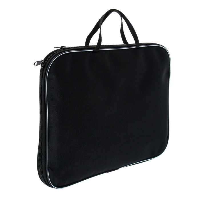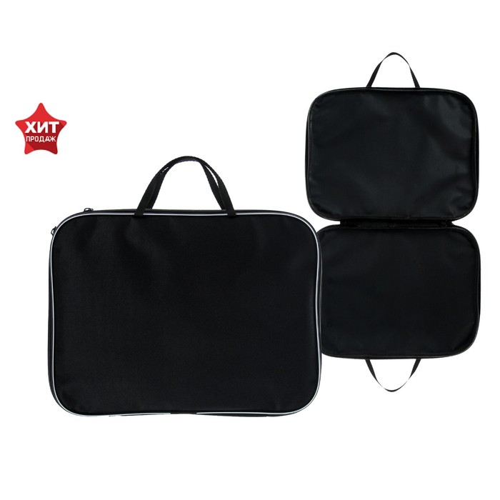 Текстильная папка с ручками формата А4 – надёжное и удобное решение для хранения и транспортировки документов. Выполнена из прочного нейлона 600D, устойчивого к износу и влаге. Внешние габариты – 350×270×20 мм. Чёрный цвет с двуцветным кантом придает изделию строгий деловой вид. Вместительное отделение позволяет хранить документы, тетради, канцелярские принадлежности. Эргономичные ручки обеспечивают комфортную переноску. Идеально подходит для офиса, учёбы и деловых встреч.