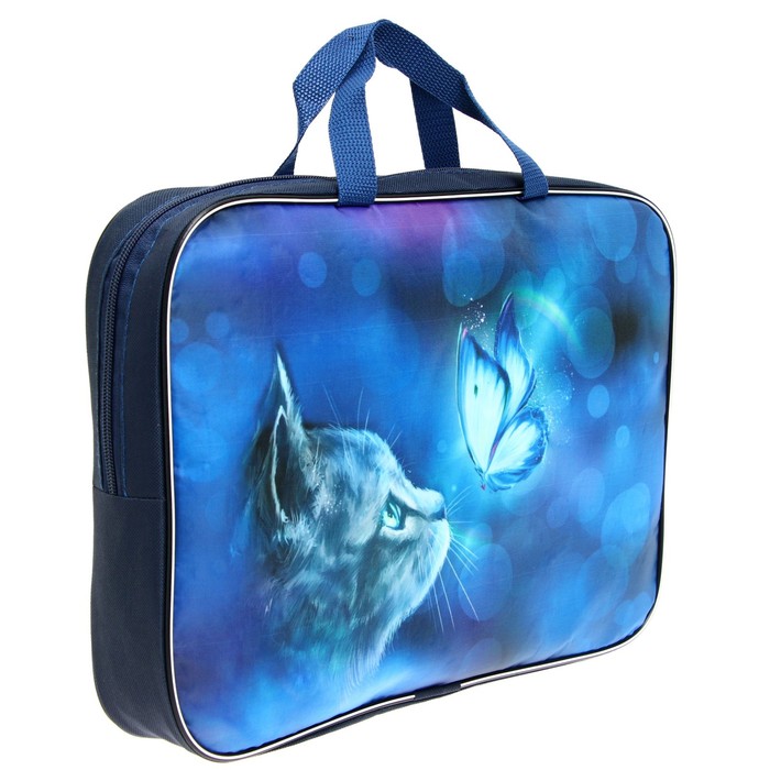 Папка текстильная на молнии с ручками, формат A4+. Размер 270 х 70 х 350 мм. Материал: износо-морозостойкий водоотталкивающий 100% полиэстер. Предназначена для транспортировки учебных принадлежностей, документов и различных аксессуаров. Имеет одно большое отделение с расширением и карманом внутри, застежка на молнии с мягким ходом. Для комфортной переноски ручки папки выполнены из прочной стропы