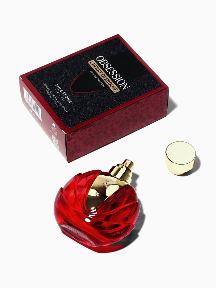 Milestone OBSESSION CHERRY OVERDOSE — это парфюм, который словно живописует бурю эмоций, где сочная сладость спелой вишни встречается с бодрящей свежестью зелёного мандарина, создавая яркое и энергичное первое впечатление.
