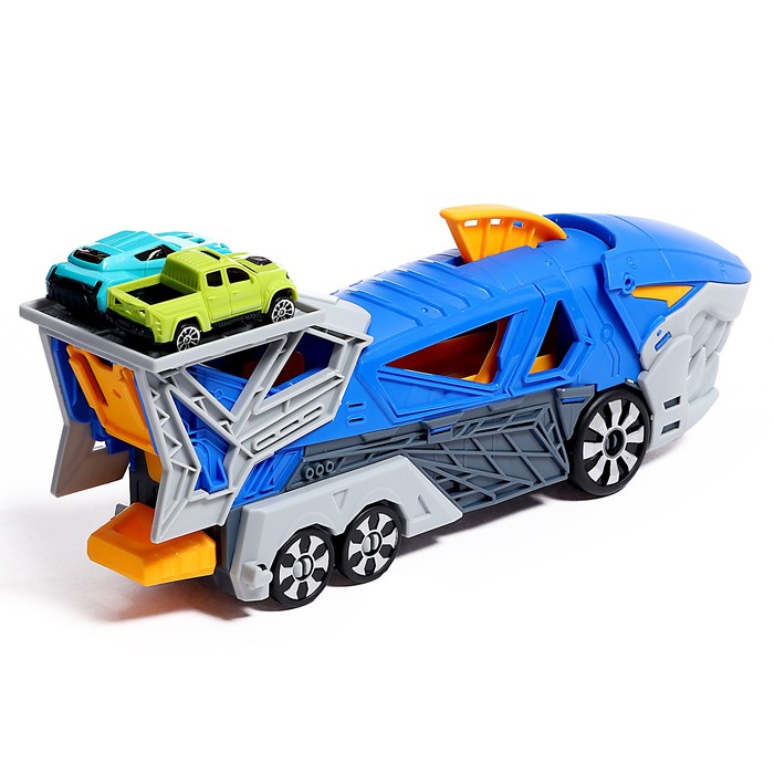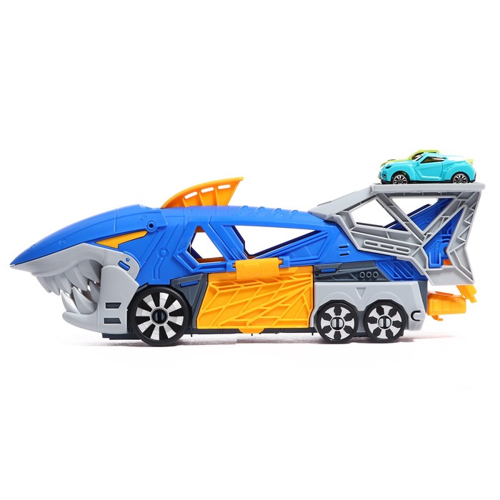 Парковка SHARK — игровой комплекс в форме хищной рыбы. Акула-автовоз покорит детей своим оригинальным дизайном, а два маленьких автомобиля, которые можно запускать с катапульты или скатывать с горки, подарят массу ярких эмоций.