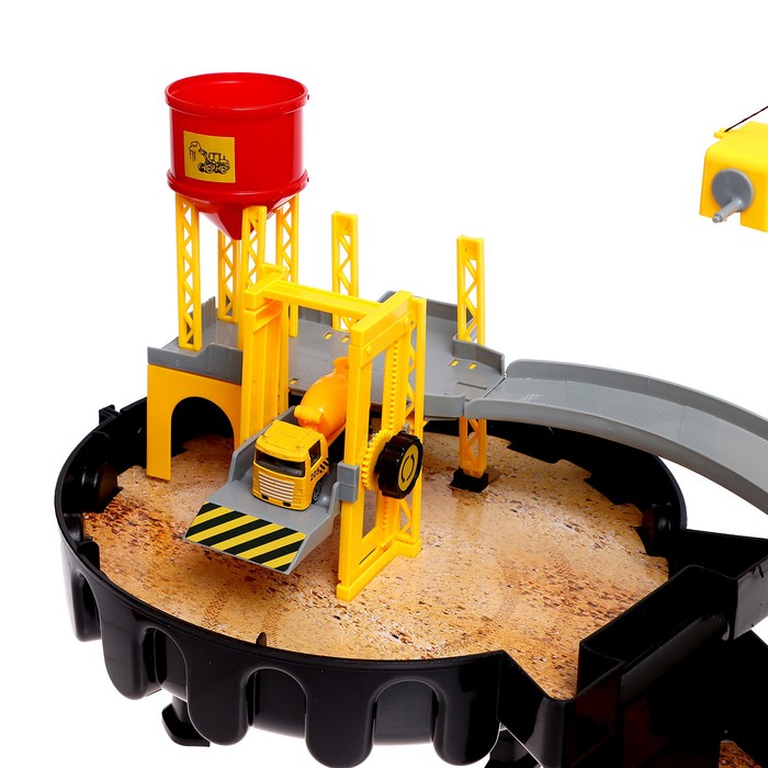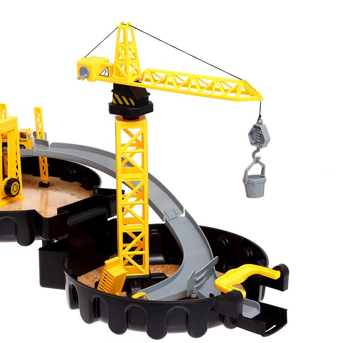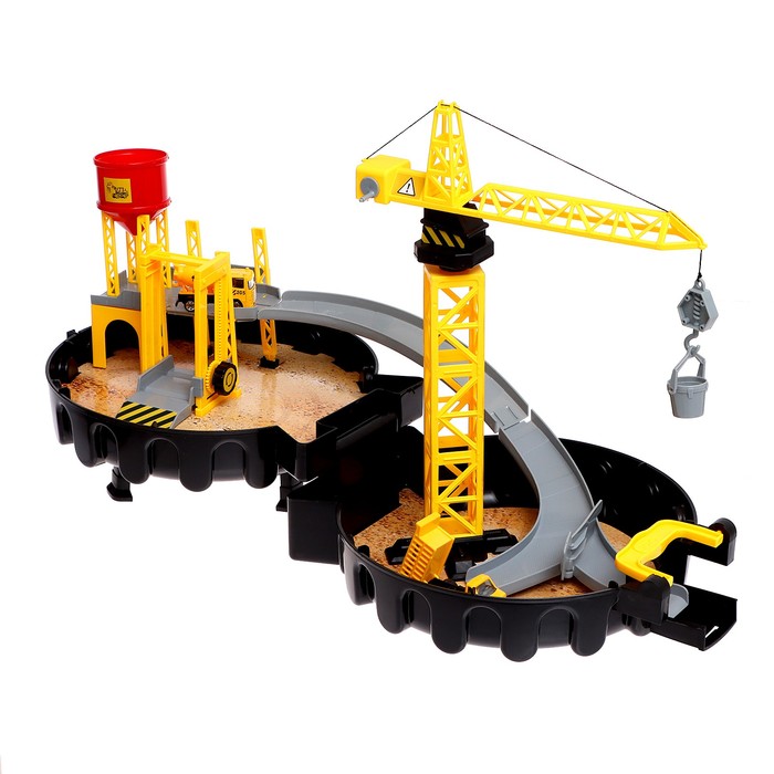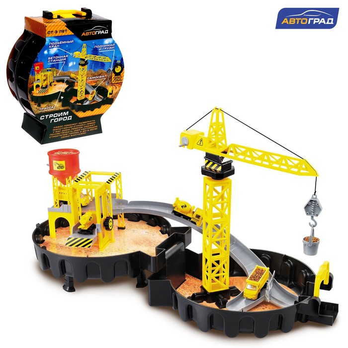 Стоит раскрыть компактный чемоданчик, и перед вами возникнет настоящая стройплощадка. Модуль сочетает множество разнообразных реалистичных деталей с подвижными элементами. На подъёмном кране чадо переместит грузы, на самосвале подвезёт необходимые материалы по двухуровневой трассе, а с бетономешалкой строительной смеси хватит на воплощение любых задумок!