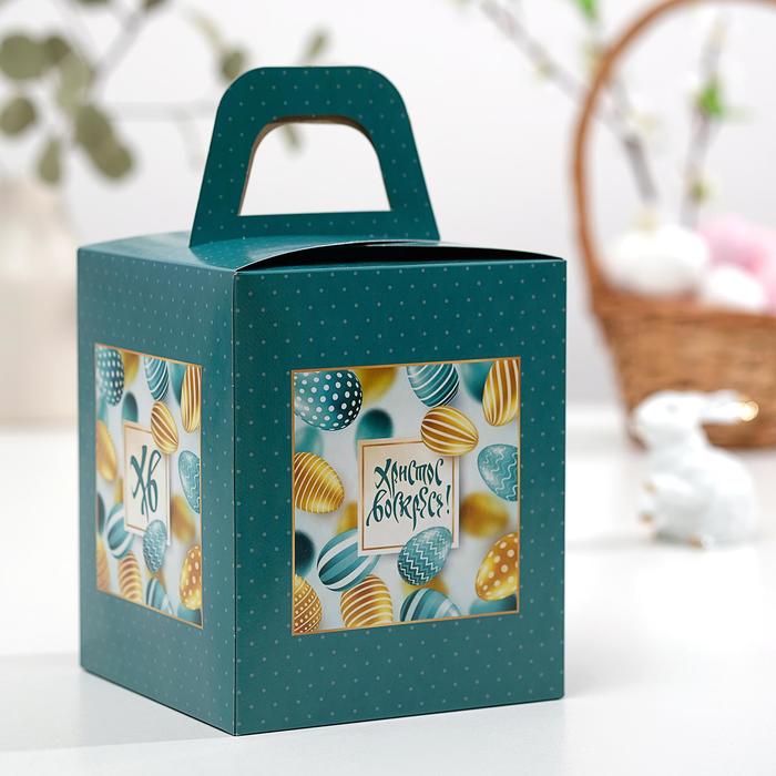 Пасхальная коробочка с окном «ХВ бирюзовая», 15×15×18 см