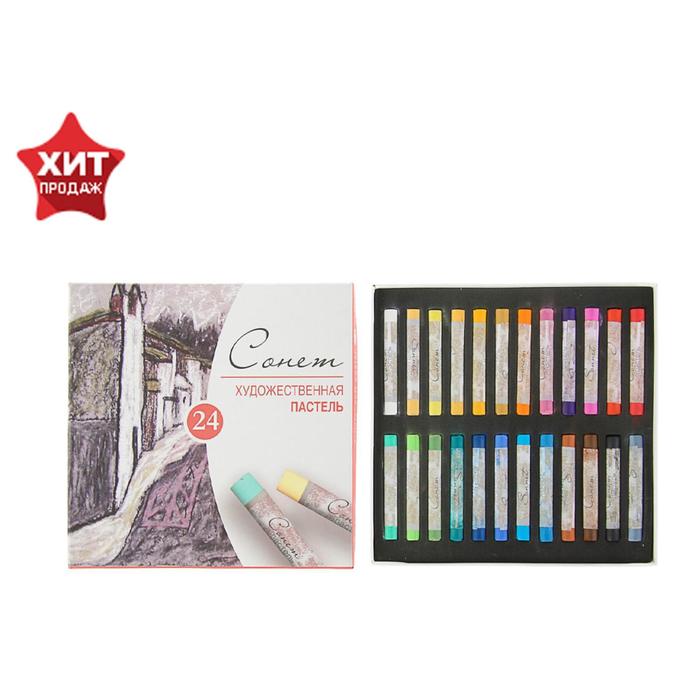 Пастель сухая ЗХК "Сонет", 24 цвета, Soft, D-8 мм/L-60 мм, круглое сечение, художественная, 7141224