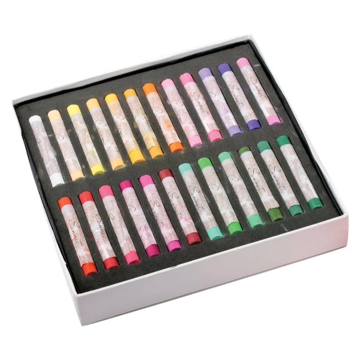 Художественная пастель "Сонет" предназначена для живописи и декоративных работ. Произведена по особой технологии с применением тонкодисперсных пигментов, благодаря чему пастельный штрих мягкий, бархатистый, легко ложится и растушевывается на основе. Чистые интенсивные цвета пастели отлично смешиваются между собой, позволяют добиваться плавных переходов и градиентов. Кроме традиционного применения, ее можно сочетать с другими материалами (чернилами, гуашью, акварелью, акрилом, карандашами), а также размывать водой или рисовать по мокрой поверхности. Представлена в наборах по 12, 24, 36 и 48 цветов, а также двумя тематическими наборами "Графика" и "Земляные тона".