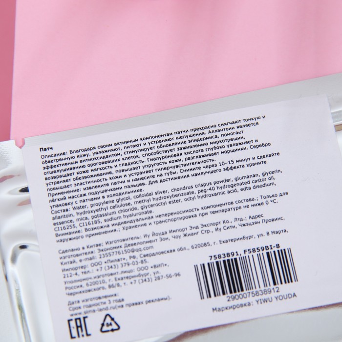 Благодаря своим активным компонентам гидрогелевые патчи для губ прекрасно смягчают тонкую и обветренную кожу, глубоко увлажняют, питают и устраняют шелушения. Аллантоин является эффективным антиоксидантом, стимулирует обновление эпидермиса, помогает отшелушиванию ороговевших клеток, способствует заживлению микротрещин, возвращает коже мягкость и гладкость. Гиалуроновая кислота глубоко увлажняет и устраняет обезвоживание, повышает упругость кожи, разглаживает морщинки. Кристаллы серебра питают кожу губ витаминами и минералами, стимулируют кровообращение, обеспечивают лифтинг - эффект, снимают отёчность, регулируют водный баланс, очищают, увлажняют, а также обладают антибактериальным эффектом.