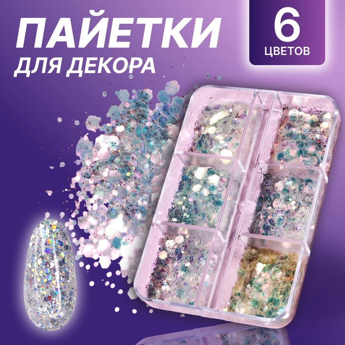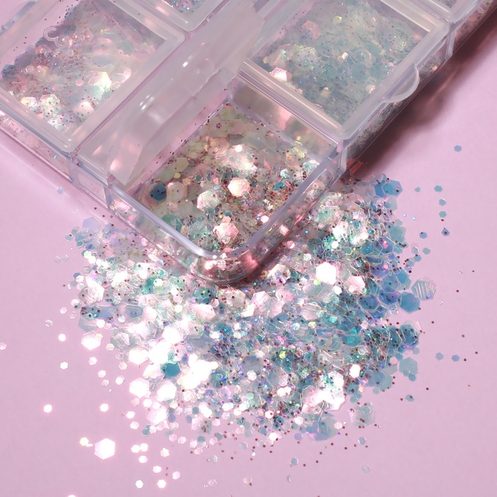 Чтобы сделать его ещё привлекательнее и ярче - Вам помогут разноцветные пайетки с суперсиянием. Просты в использовании и универсальны в применении. Можно использовать не только для маникюра, но и для поделок, декора. Пайетки находятся в органайзере, что не позволит им высыпаться.