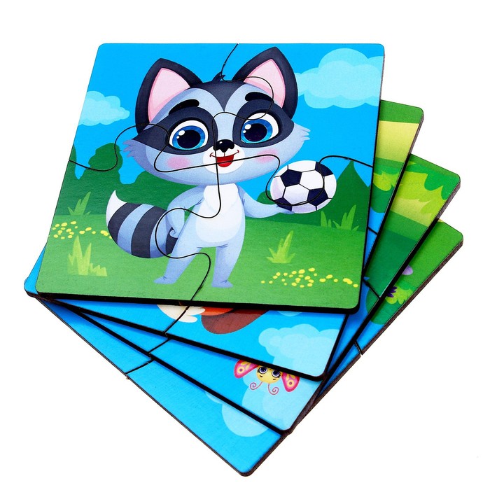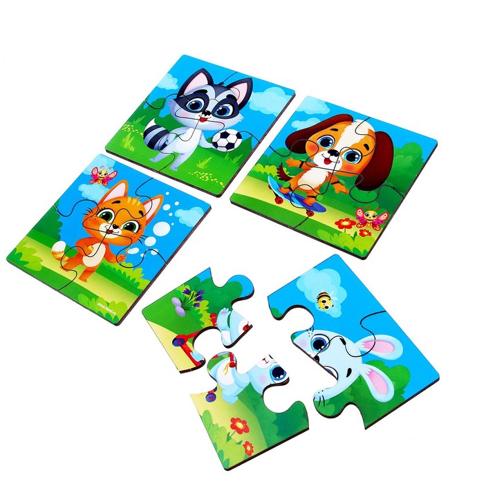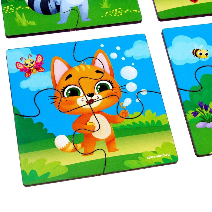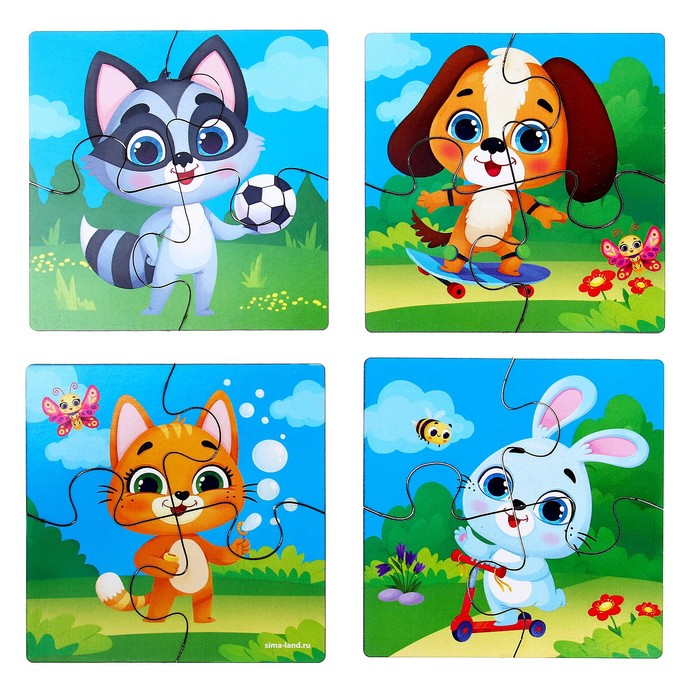- Каждый из четырёх пазлов состоит из крупных деталей, подходящих для детей младшего возраста.