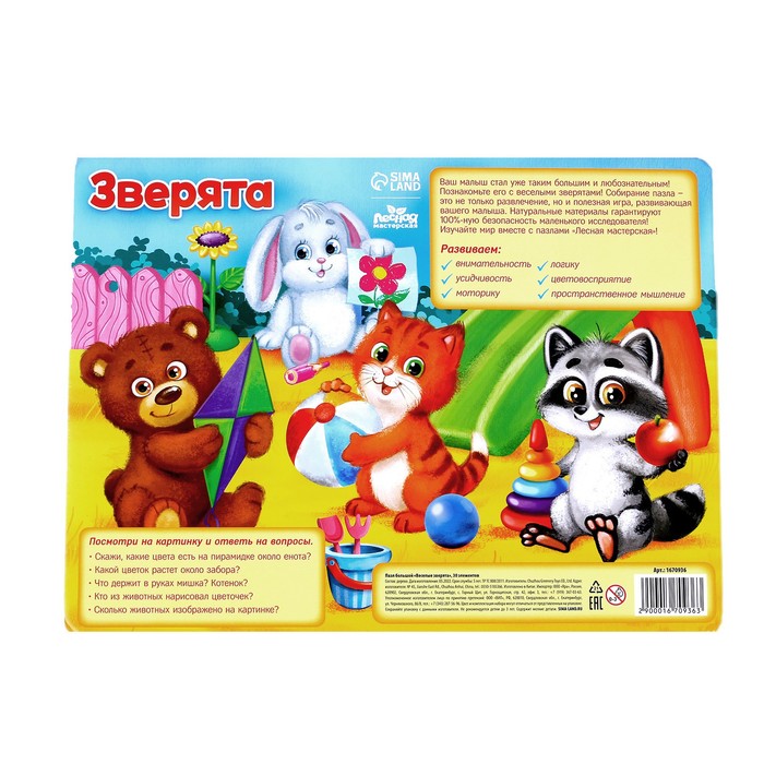 Пазл «Весёлые зверята» — идеальный подарок для ребёнка на Новый год! Также вы можете приобрести несколько наборов в качестве подарков для детей на новогодний утренник в детском саду.