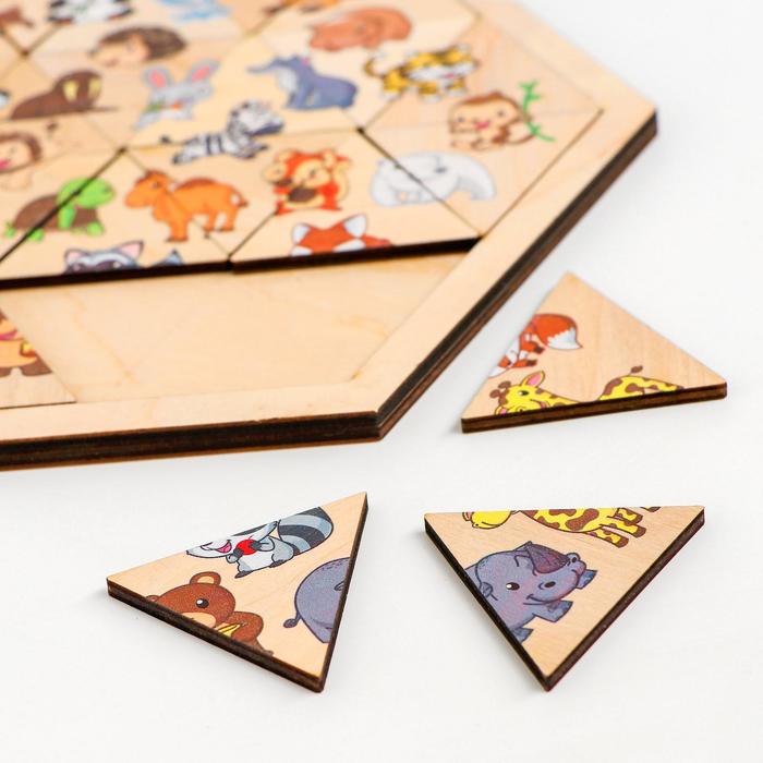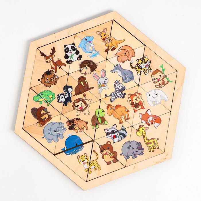 Пазл деревянный «Зверюшки. Занимательные треугольники» — изучение окружающего мира при помощи пазла, одно из самых интересных и полезных занятий для малыша в первые годы его жизни. Животный мир особенно привлекает малышей, поэтому предлагаем изучить новых зверей с деревянным пазлом.