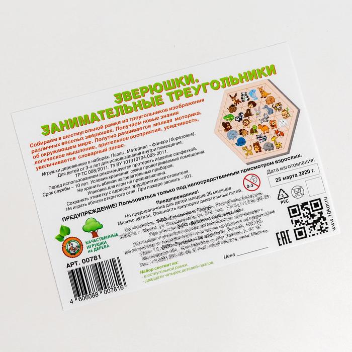 - Игра с деревянным пазлом «Зверюшки» не только расширяет знания о животных планеты, но и стимулирует развитие мелкой моторики рук, логики и усидчивости.