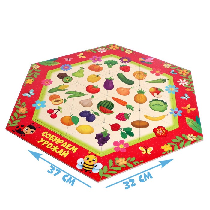 Фигурный пазл «Собираем урожай» — это занимательная развивающая игра в новом формате. Необычные элементы привлекают внимание и стимулируют познавательную активность на более высоком уровне, чем детали классической формы.