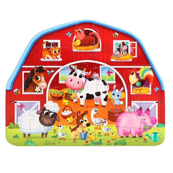 - Малыш соберёт все 40 деталей в одно целое, и познакомится с разными животными фермы.