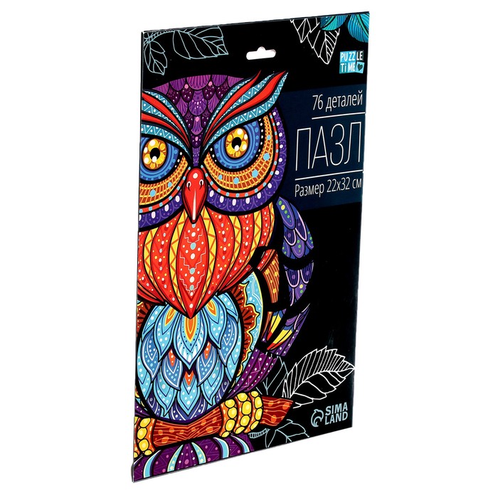 Пазл фигурный в рамке «Сова», на подложке, 76 деталей